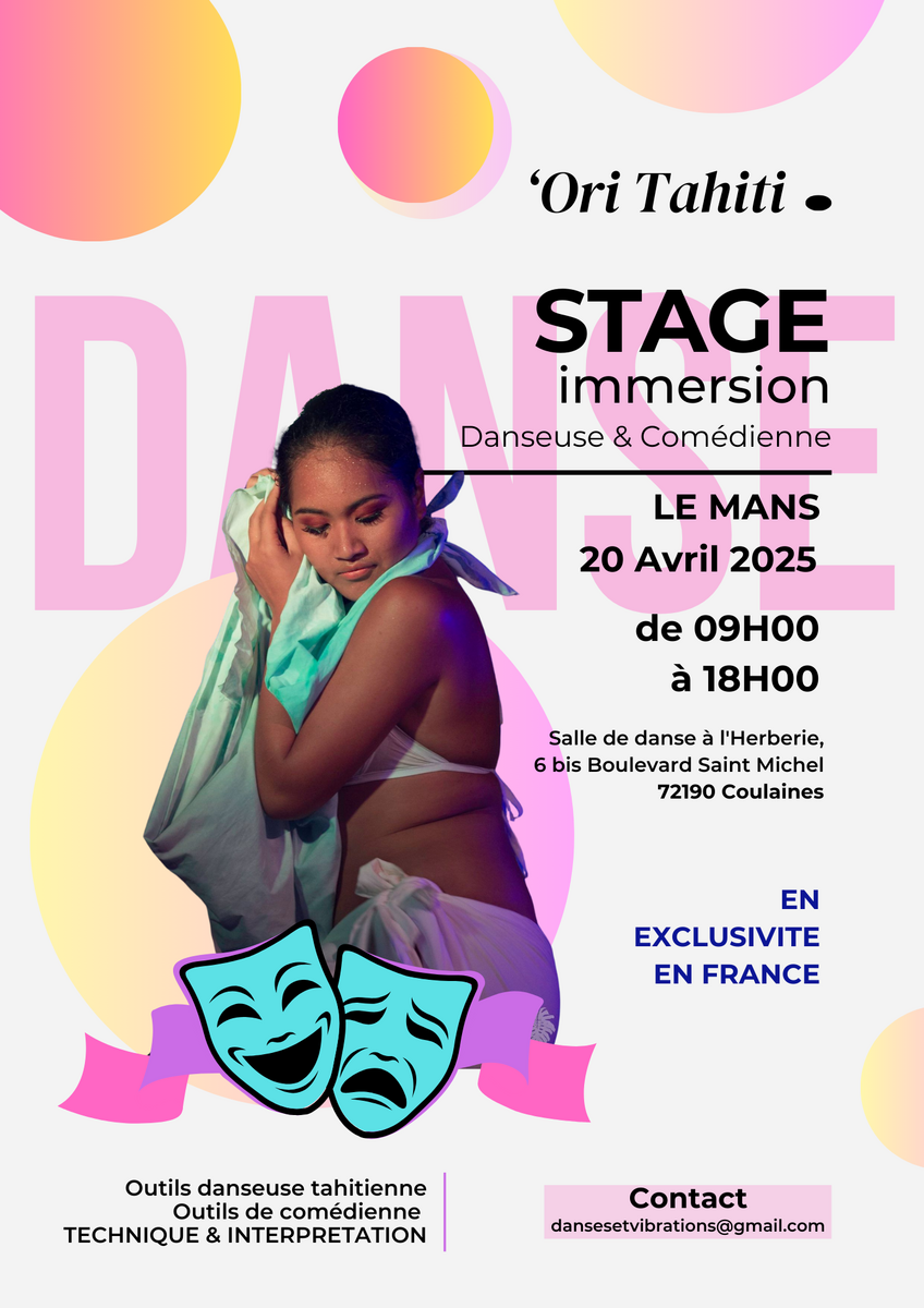 Nous avons le plaisir d'accueillir la danseuse et comédienne Mahealani Amaru pour un stage Ori Tahiti le dimanche 20 avril !